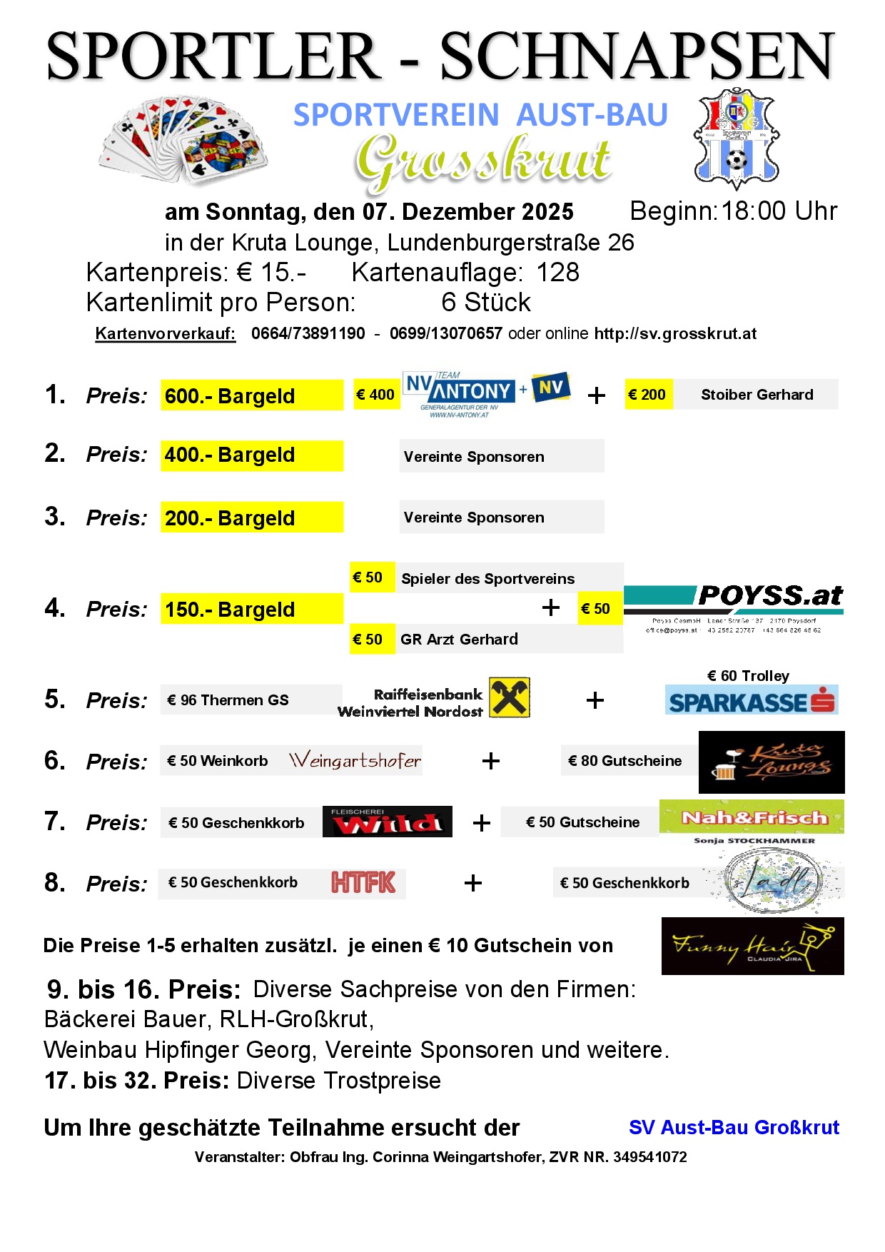 | 1. Preis 600.- 2.Preis 400.- 3. Preis 200.- 4.Preis 150.- | ||||