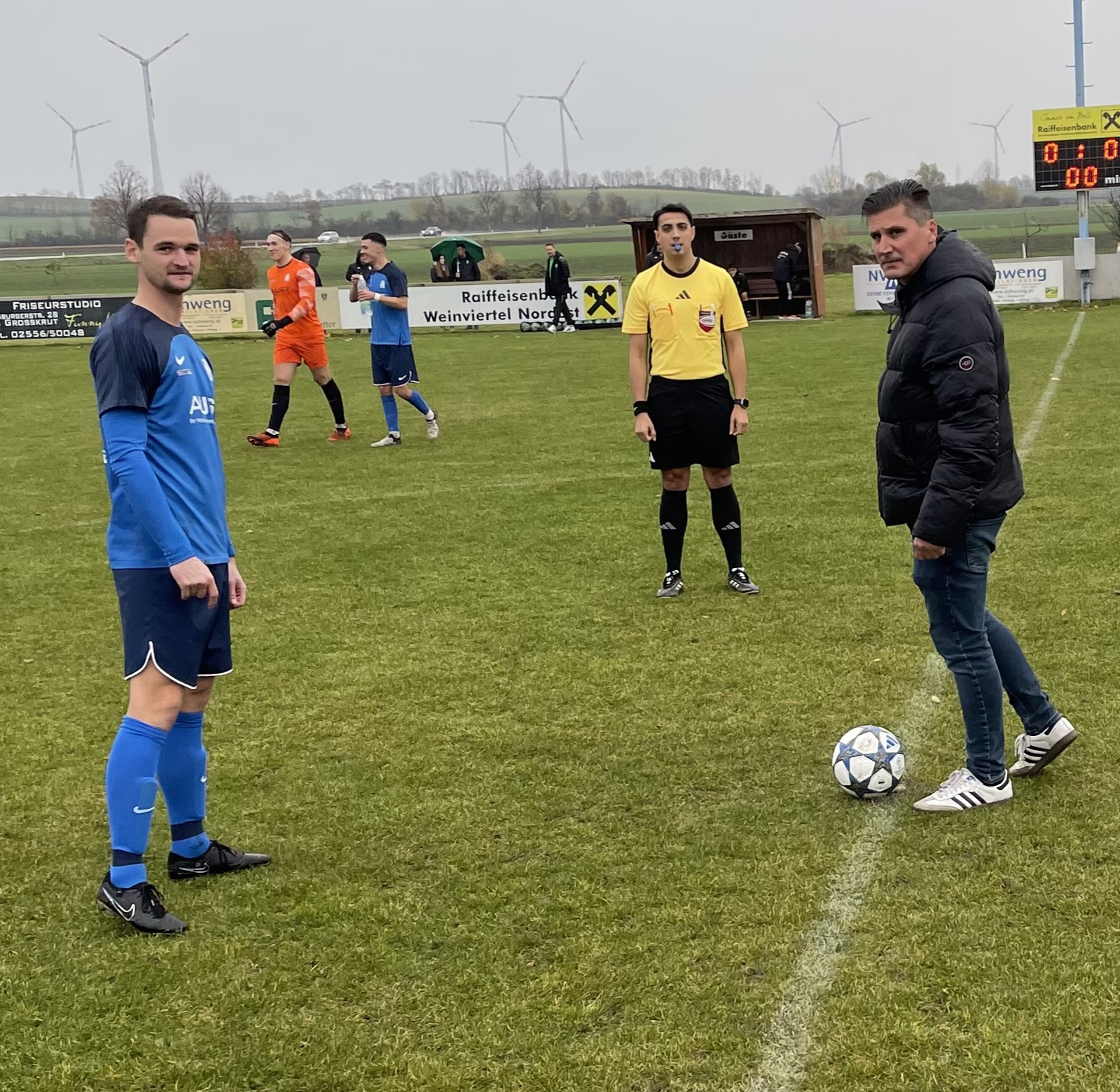 Ballspende Müller 1Beim Heimspiel  am Samstag, den 08.11. gegen Hausbrunn spendete Ing. Gerd Müller (Hohenau) den Matchball und eröffnete das Spiel mit dem Anstoß.